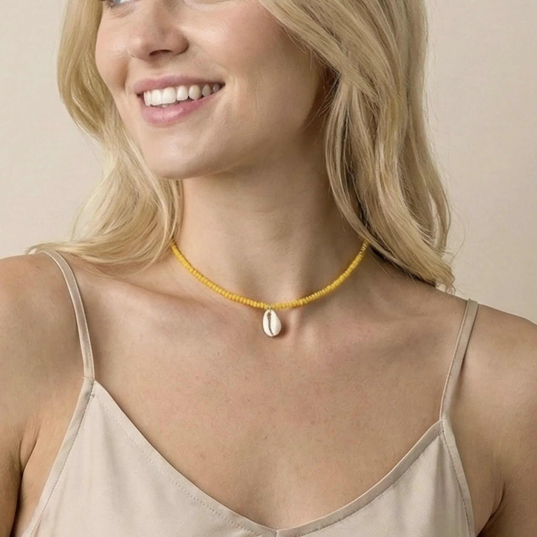 Ideal para se presentear ou surpreender alguém especial, a choker Cristal Amarelo com Conchinha em Resina leva a energia do sol e do mar para o seu estilo com a assinatura da UNA.