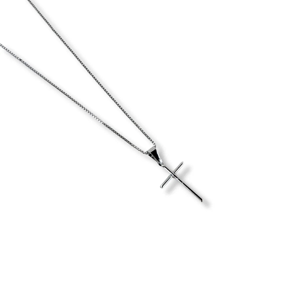 CORRENTE DE AÇO MASCULINO COM PINGENTE DE CRUZ FINA