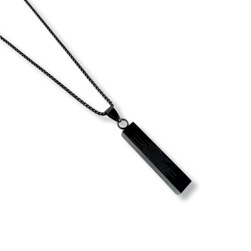 CORRENTE DE AÇO PRETO MASCULINO COM PINGENTE PAI NOSSO RETANGULO