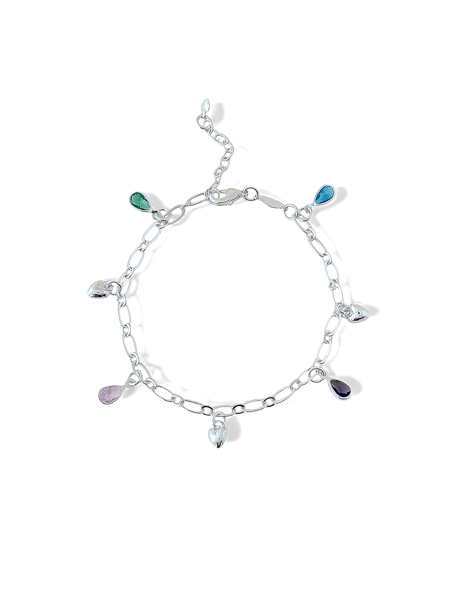 • Nome: Pulseira com Pingentes Coloridos em Formato de Gota Banhada a Prata 925