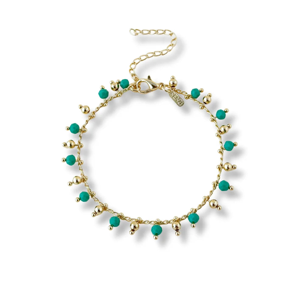 PULSEIRA DE BOLINHAS TURQUESA BANHADO A OURO 18K