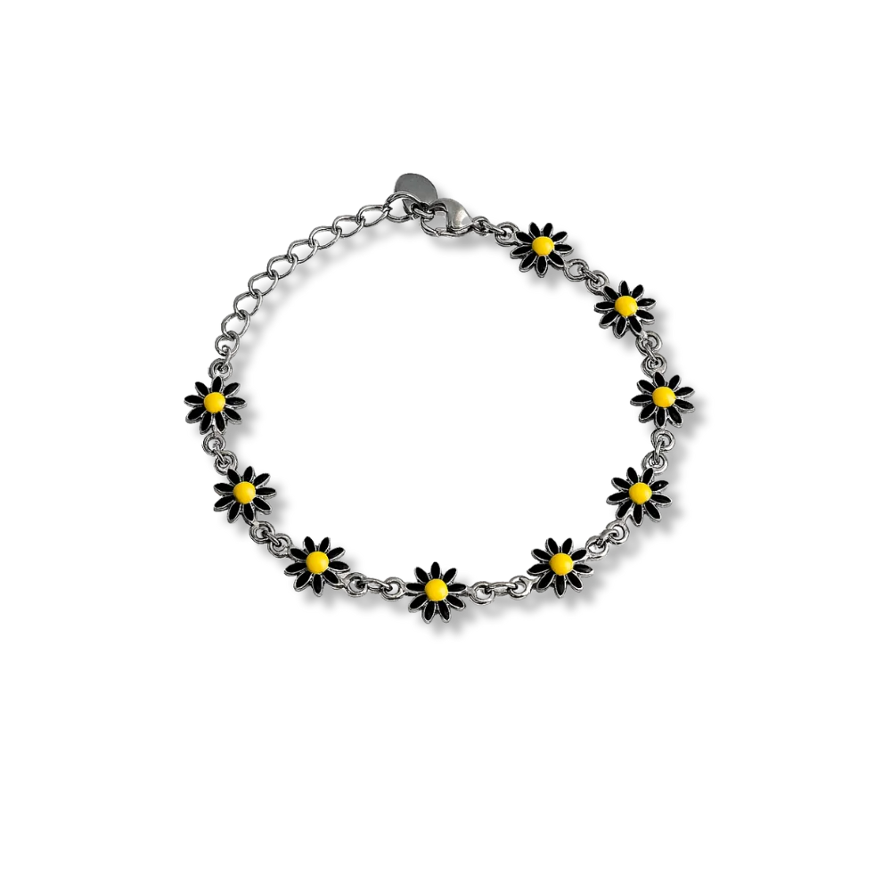 PULSEIRA FLOR ESMALTADA PRETA AÇO 316L