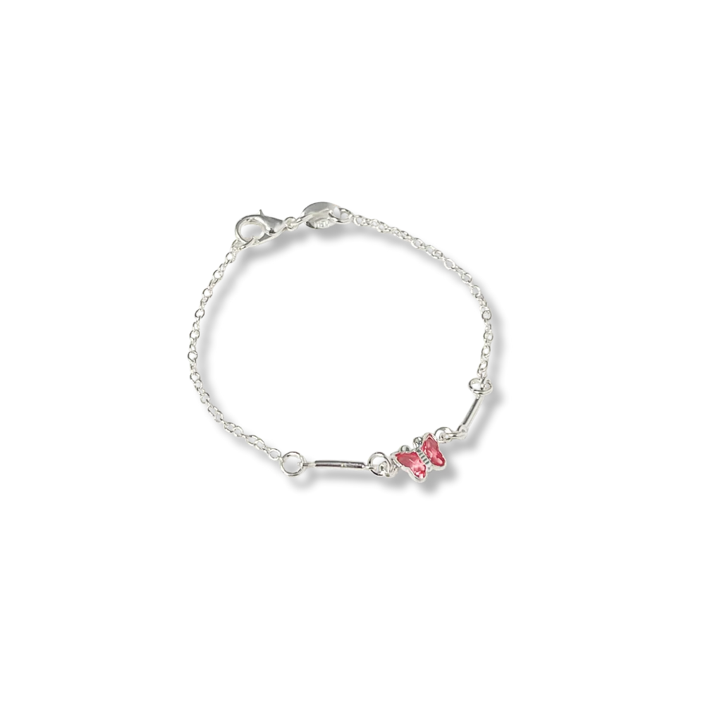 PULSEIRA INFANTIL BORBOLETA ESMAL.LILAS PRATA