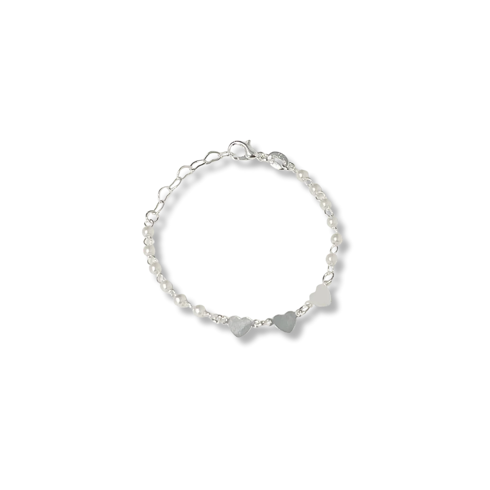 PULSEIRA INFANTIL PEROLAS 3CORAÇÕES PRATA