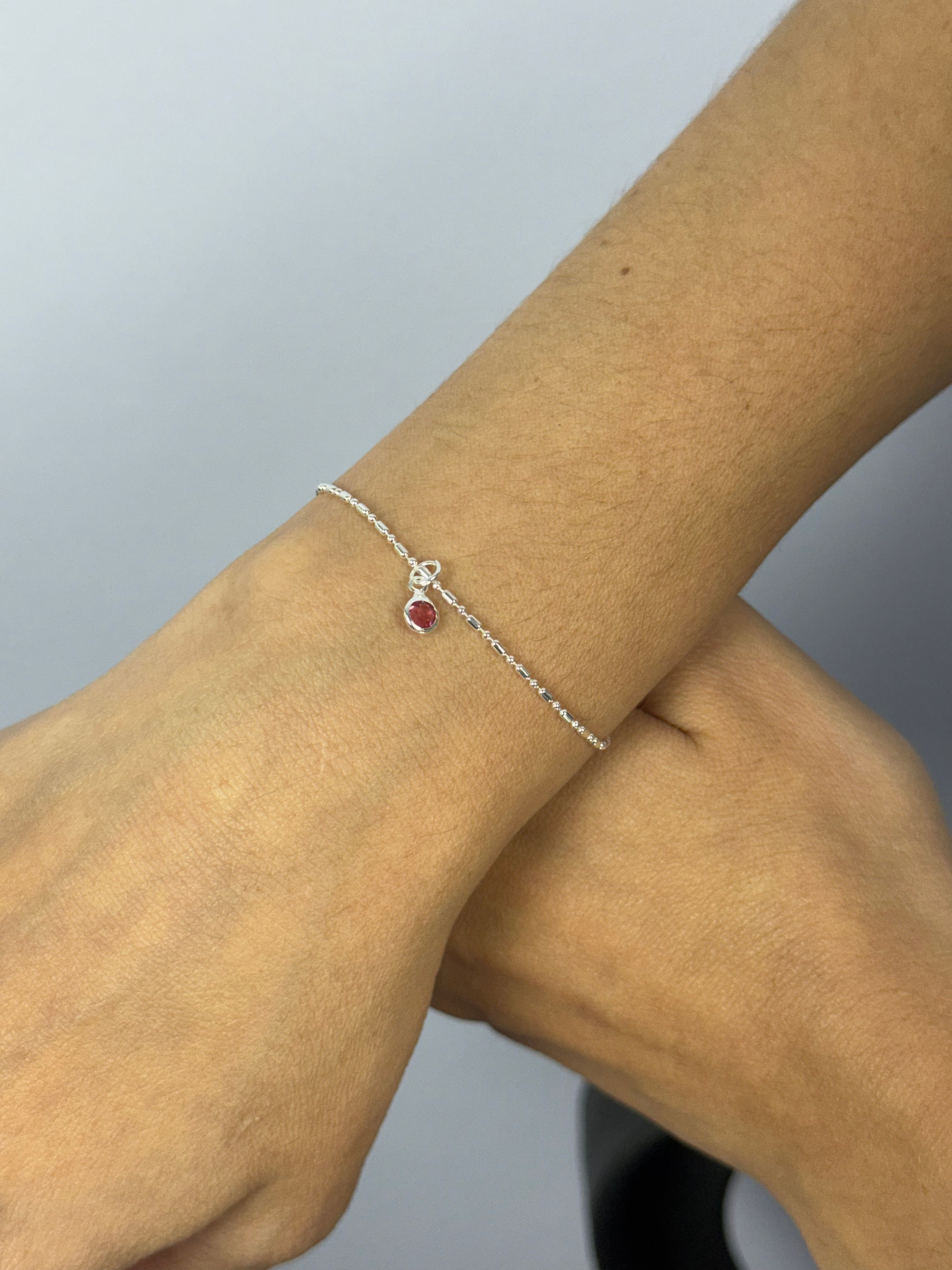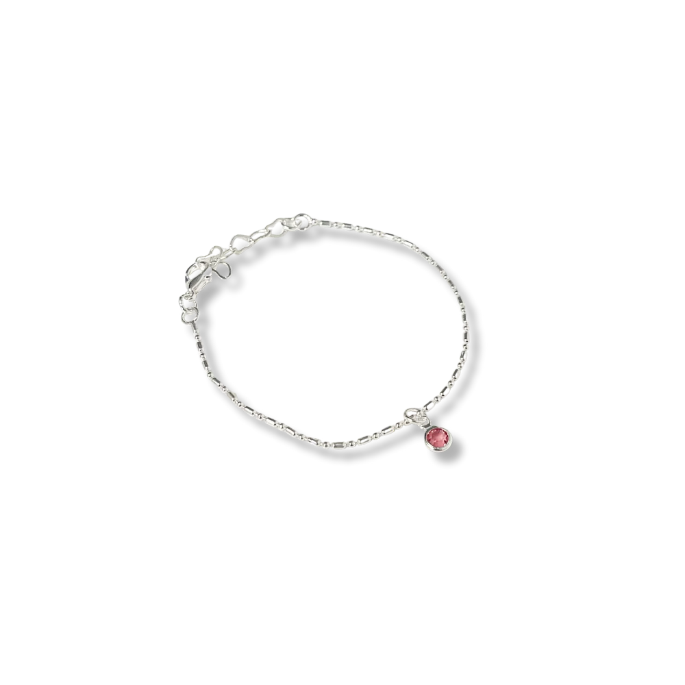 PULSEIRA INFANTIL PINGENTE REDONDO ROSA PRATA