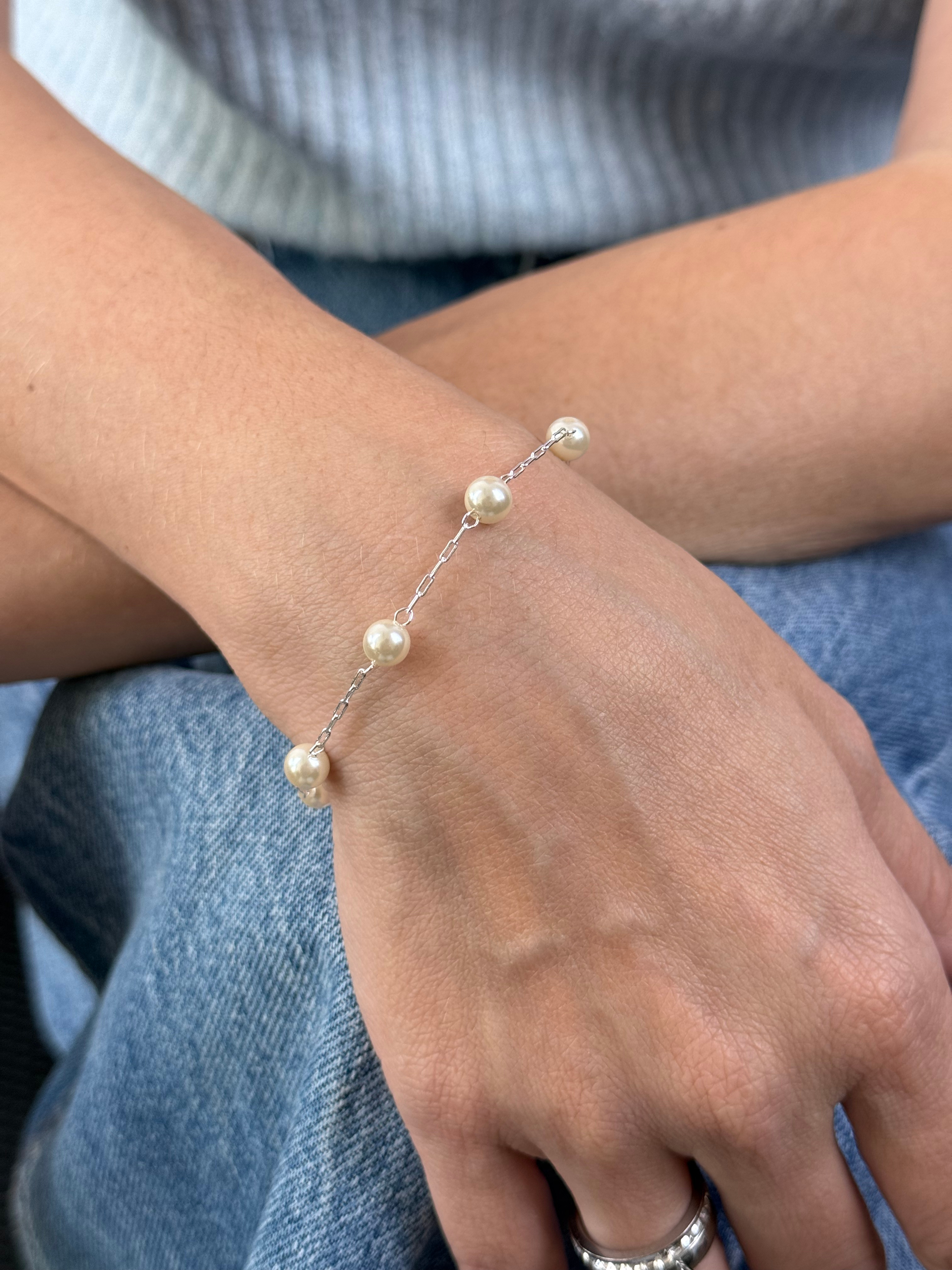 PULSEIRA PÉROLAS GRANDES INTERCALADAS PRATA